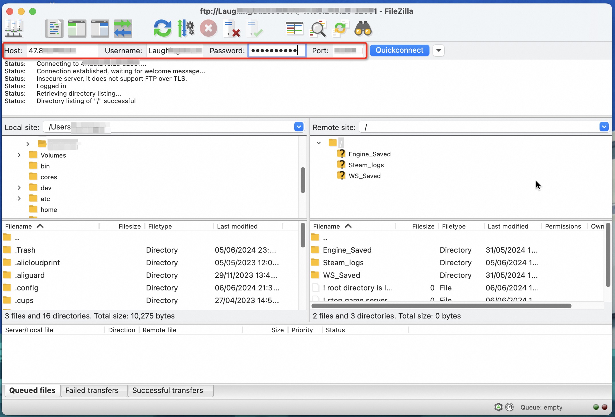 ## 1、存档相关指南 为了控制您服务的文件,以便您可以将文件上传/下载到其他服务器,我们建议您使用 FTP 服务。以下是操作指南。 * 下载「[FileZilla](https://filezilla-project.org/download.php?show_all=1)」,选择您的操作系统(OS)并安装。 ![](/uploads/20250726/586c0e8b316fe9818c4b809e2d2ccd99.jpeg) * 在您的 SiHaiCloud 控制台中找到您的「主机/IP」「端口」「用户名」「密码」。 * 将「主机/IP」「端口」「用户名」「密码」复制并粘贴到您下载的FileZilla中,然后点击「快速连接」。 ![](/uploads/20250726/0479a72a4050a285aa968ae400715f62.jpeg) * 您可以通过从右向左拖动来开始将文件下载到本地站点。 ![](https://docs.claw.cloud/media/5eecdaf48460cde52ff548a396fc5c0c33ec589a9f45ec9c58e70b814913bc360a414d3de9277d871abf3af1cbd75249c1764e6f6f23492370075c73a82bc181c11d0786a33d6bab594079ffec34161acde62315eb853517fc653b69905bac42.jpg) * 您还可以通过从左到右拖动文件上传到您的服务器。 ![](https://docs.claw.cloud/media/5eecdaf48460cde52ff548a396fc5c0c33ec589a9f45ec9c58e70b814913bc360a414d3de9277d871abf3af1cbd7524993ad573d658b32004e44617d7eafdae28f4070e64dd74a7822d107ef16055966546e69acad701a00fc653b69905bac42.jpg) ## 2、定价相关 SiHaiCloud游戏服务器的定价是什么? * 我们有多种定价方案。 如何选择最佳的服务器套餐? * 这取决于您预计在您的服务器上玩多少人以及玩多长时间。 SiHaiCloud 的续费价格是多少? * 我们的续订价格与首次购买价格相同。例如,如果您购买了 1 个月的计划(价格为 13.99 美元),然后想要购买第二个月的计划,并且使用相同的区域和时段,则需要再支付 13.99 美元。 * 如果您在首次购买我们的产品时选择使用促销代码,续订价格可能会有所不同。 ## 3、Steam创意工坊模组玩法 * 从灵魂面甲的创意工坊中选择您喜爱的模组:[https://steamcommunity.com/workshop/browse/?appid=2646460](https://steamcommunity.com/workshop/browse/?appid=2646460) ![](https://docs.claw.cloud/media/mod1-%E4%B8%AD%E6%96%87.jpg) * 选择模组后,进行订阅。 ![](https://docs.claw.cloud/media/mod2-%E4%B8%AD%E6%96%87.jpg) * 找到每一个模组的专属模组ID,并复制到SiHaiCloud的控制台中的「服务器配置」。如需上传多个模组,需要用英文逗号(,)将多个模组隔开,即可立即生效。 ![](https://docs.claw.cloud/media/mod3-%E4%B8%AD%E6%96%87.jpg) ![](https://docs.claw.cloud/media/2.jpg) ## 4、Rust腐蚀连接问题 * 问题:Rust游戏内提示连接不上。具体报错内容如下:disconnecting: Couldn't Download Level: proceduralmap.3000.793197.254\_8f91c4162643399e04e36616968d1513 (Request timeout) ![](https://docs.claw.cloud/media/rust-disconnect.jpg) * 解决方案:在你的Steam客户端,找到Rust游戏的根目录,删除temp文件夹。一般而言的路径在steam\\steamapps\\common\\Rust\\temp